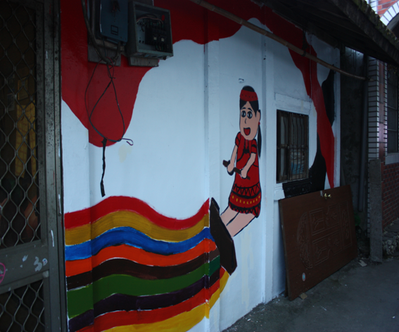 藉著街角藝術,以賽德克三元素顏色的概念彩繪,讓部落增添色彩,也看見部落的生命力。