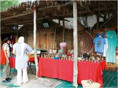 因為靠近海岸,海濱有關於木船的展示和說明,這是過去人們靠捕魚、珍珠貿易維生的歲月,最重要的交通和生財工具。最有趣的是在一間間泥屋裡,有各種不同主題的手工藝品現場製作與販售,像是做衣服的,裡頭就有一台傳統織布機,可以看到阿拉伯婦女織著衣服;做香水和瓶子的,現場就有各種不同香料,工人則認真吹著玻璃,製作出一隻只精美漂亮的香水瓶;做武器刀劍的,工人便熟練地敲銅鑄鐵,另外還有陶器、木雕、咖啡壺、貝殼飾品、皮件、地毯各種不同的手工藝品,你不但能親眼看見它們的製作過程,由於工匠手藝好、作品品質佳,也值得你現場買一件極具個人風格的工藝品。