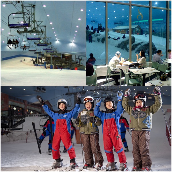 這個可供1,500人同時滑雪的場地,距離杜拜的海灘約5分鐘之遙。面積2.25萬平方米,相當於3個足球場,用600噸白雪鋪設半米厚的雪地,室內氣溫為攝氏零下1度,
