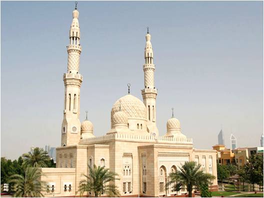 朱美拉清真寺依照中世紀法密德王朝傳統建造,能夠容納1,200 人。在杜拜魅力浮華的底層,仍可感受穆斯林人民的謙卑,朱美拉清真寺正是好地方。