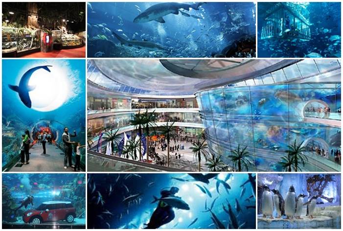 位於杜拜購物城的中央,樓超三層,是目前金氏世界紀錄裡最大的水族館,可以在超巨型玻璃水族箱旁欣賞各式的海洋生物,