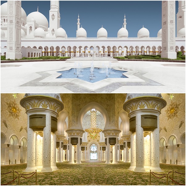 2008年開放的阿布達比大清真寺,占地22000平方公尺,締造多項世界記錄,為阿拉伯最大、全世界最美之一的清真寺。