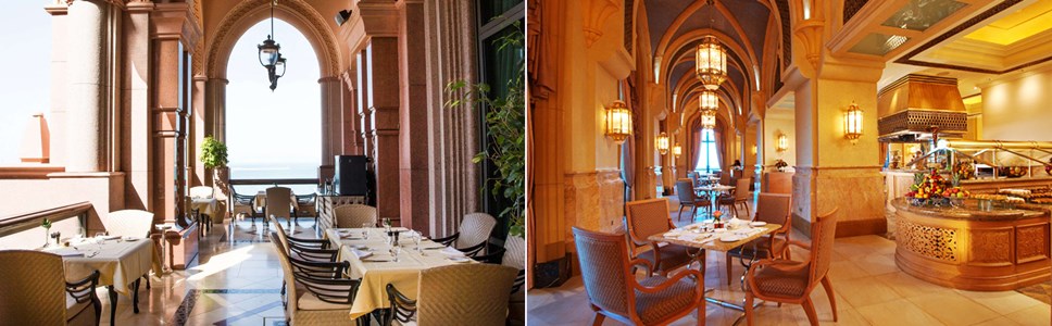 該餐廳位於阿聯酋皇宮酒店的大堂層(4樓),其寬敞的露臺俯瞰海灘和碼頭。
