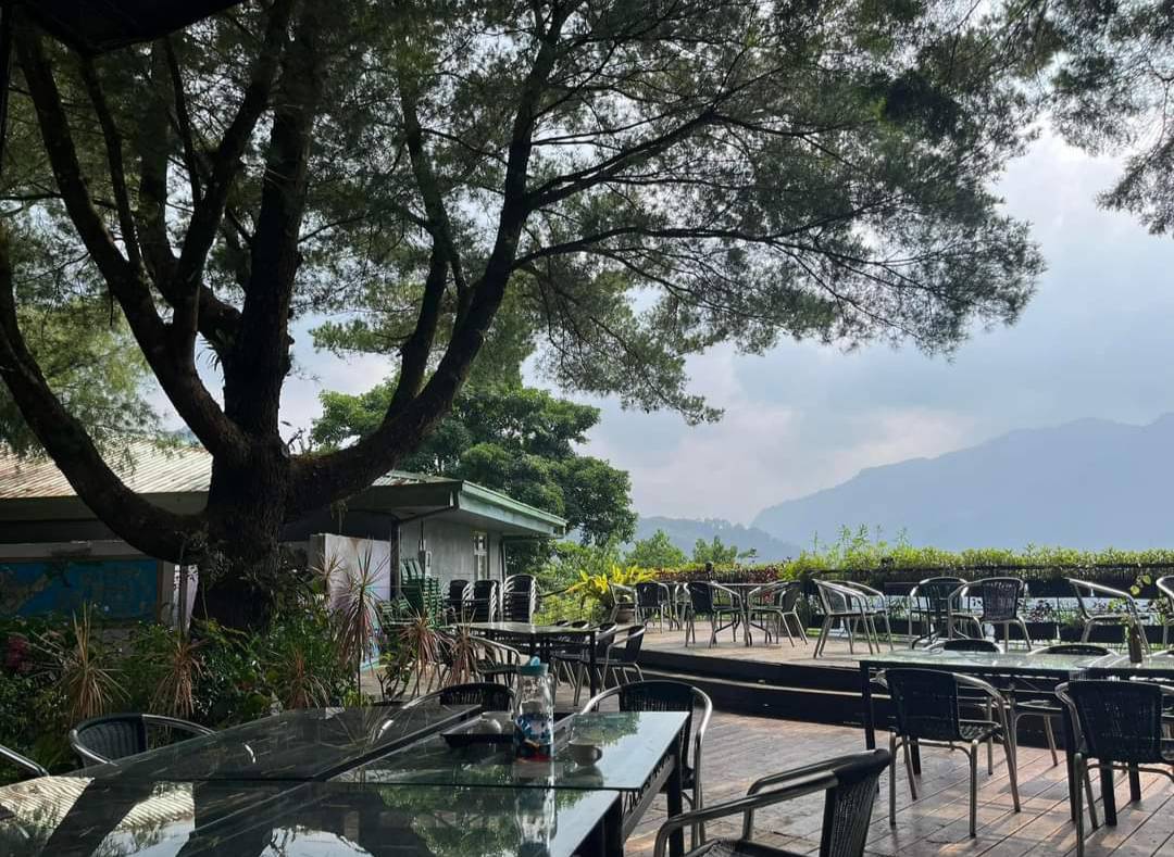 園區內數顆原生種的五葉松巨木,在泰雅高腳屋陪襯之下更增添部落風情,咖啡平台上眺望