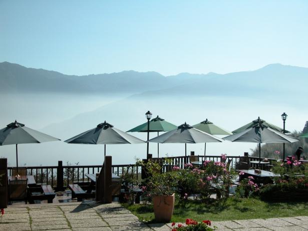 環繞的戶外庭園喝咖啡,森林和雲海環抱,開闊的景做,讓人心情開朗!農場不論中西式自助餐或養生水果