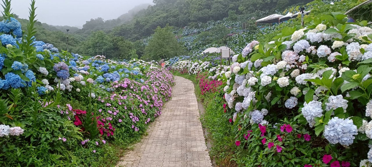 來訪可以盡情漫遊在繡球花步道裡,感受被一整片浪漫的繡球花所包圍