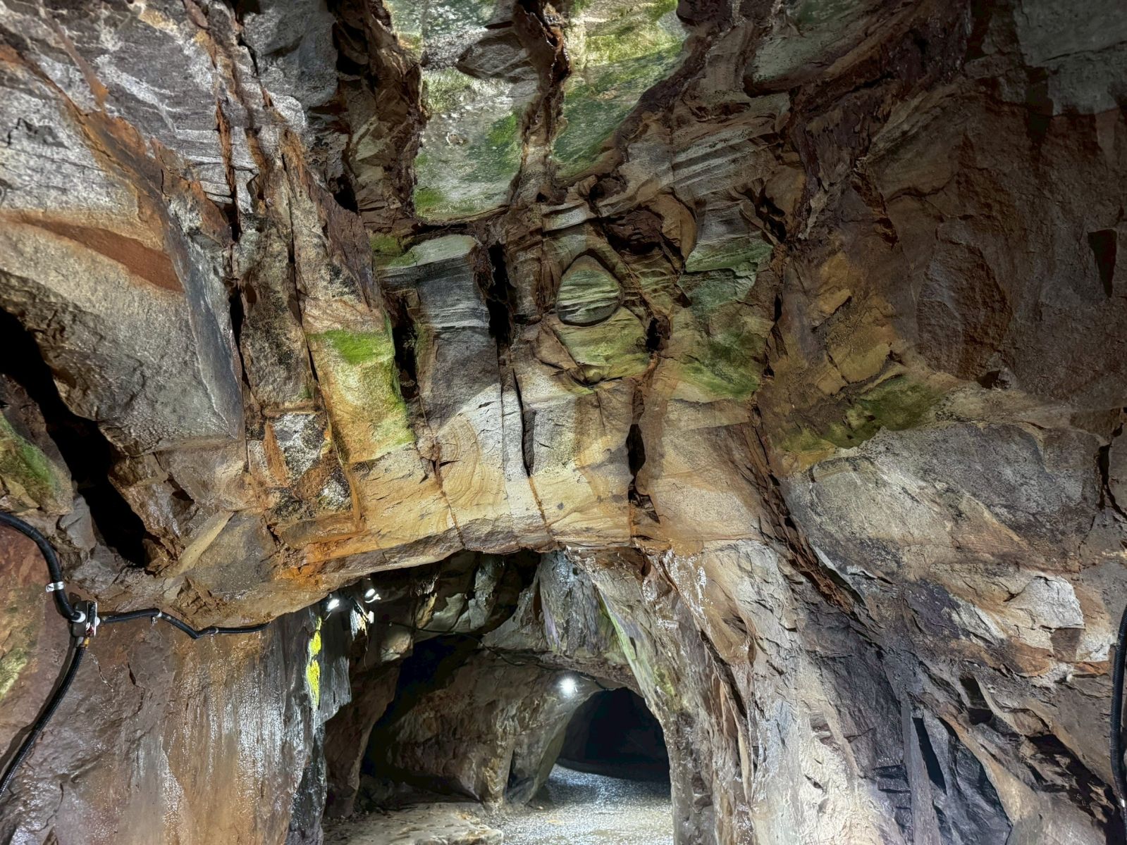 天然形成的洞窟,沒有人工氣息,僅用燈光輔助照明,高聳入天的岩壁,