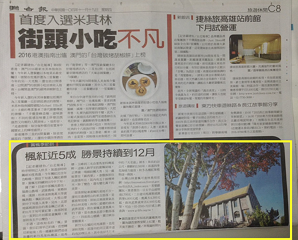 11/19感謝聯合報旅遊休閒C8刊登綠生活賞楓活動