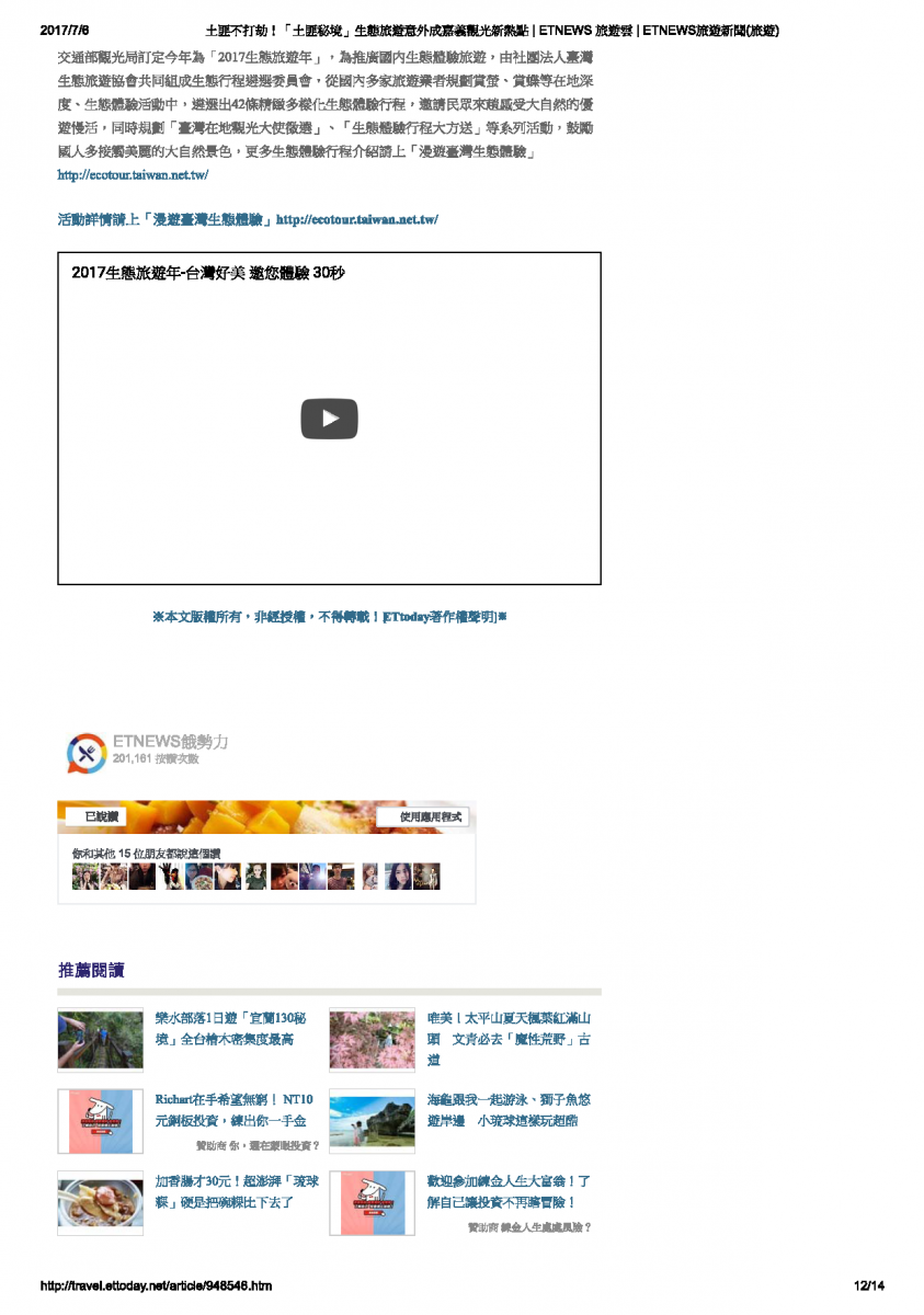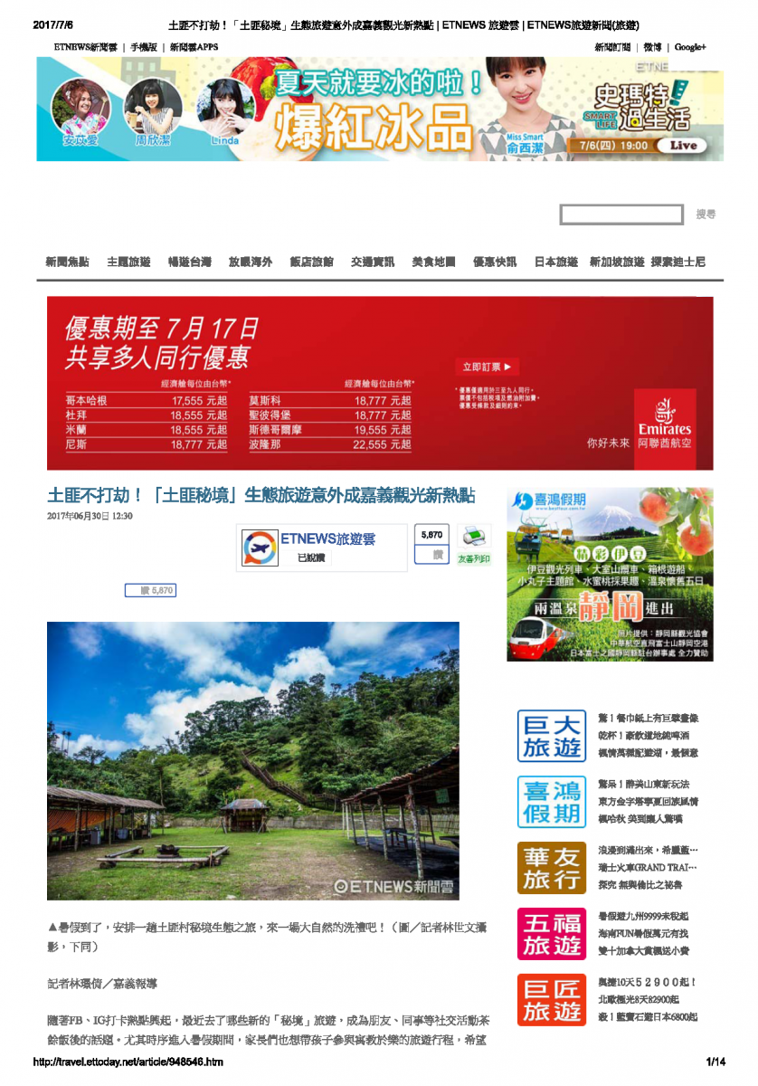 【綠生活旅行社】參賽入選2017年觀光局生態旅遊優質遊程,感謝【東森新聞】實地採訪報導~土匪不打劫!『土匪秘』生態旅遊,嘉義新亮點!媒體新聞報導~