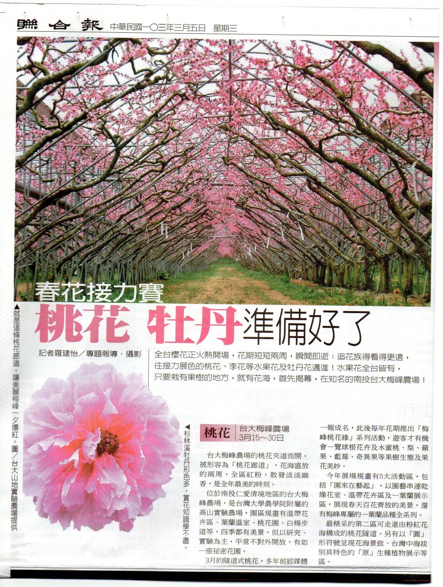 2014-03-05聯合報報導-春花接力賽~桃花 牡丹準備好了