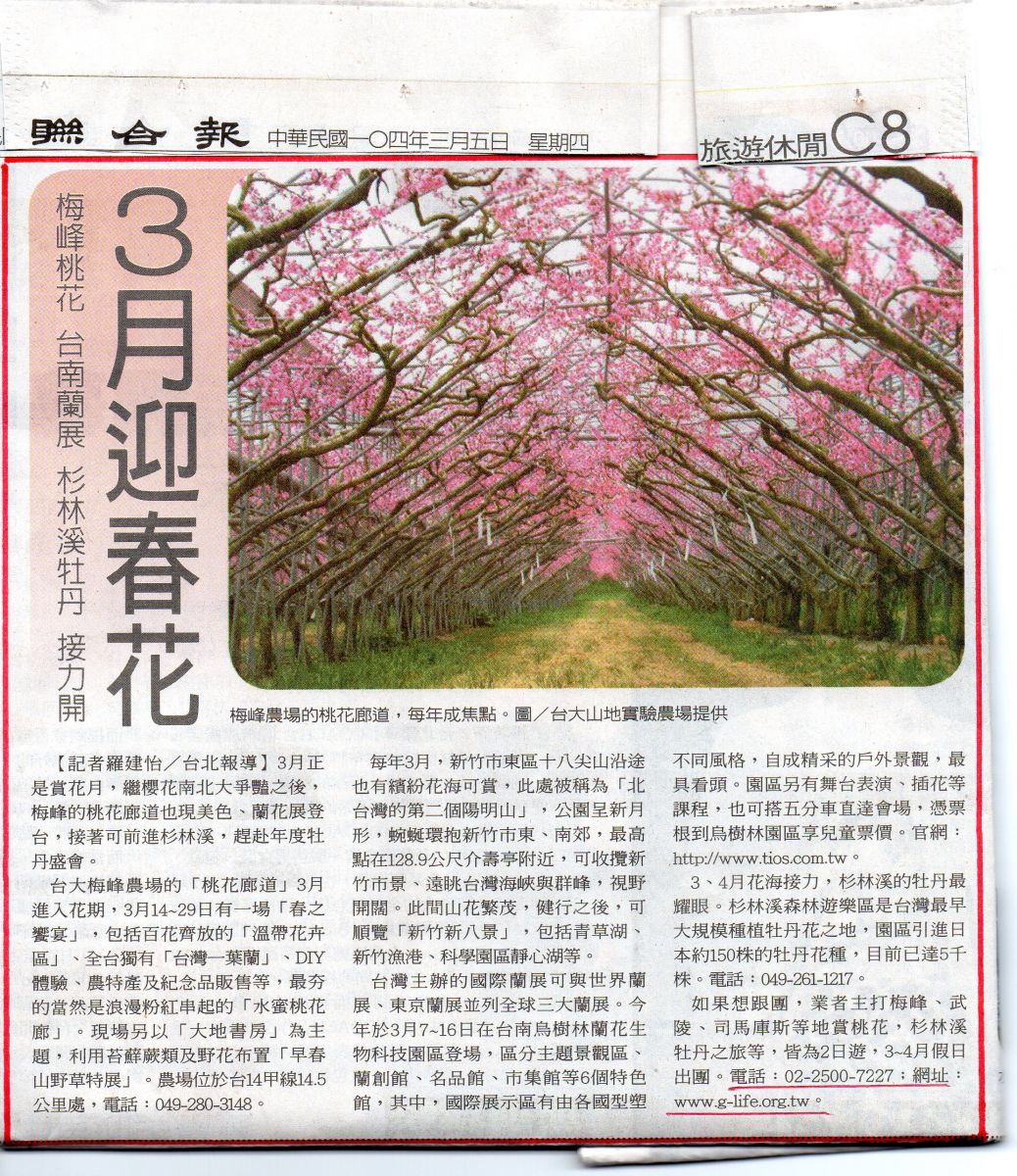 聯合報-104/3/5~旅遊休閒C8版報導
