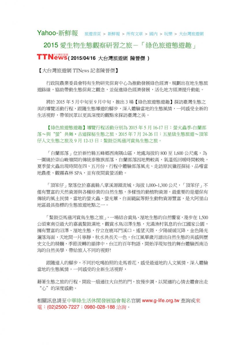 2015愛生物生態觀察研習之旅-「綠色旅遊態遊趣」