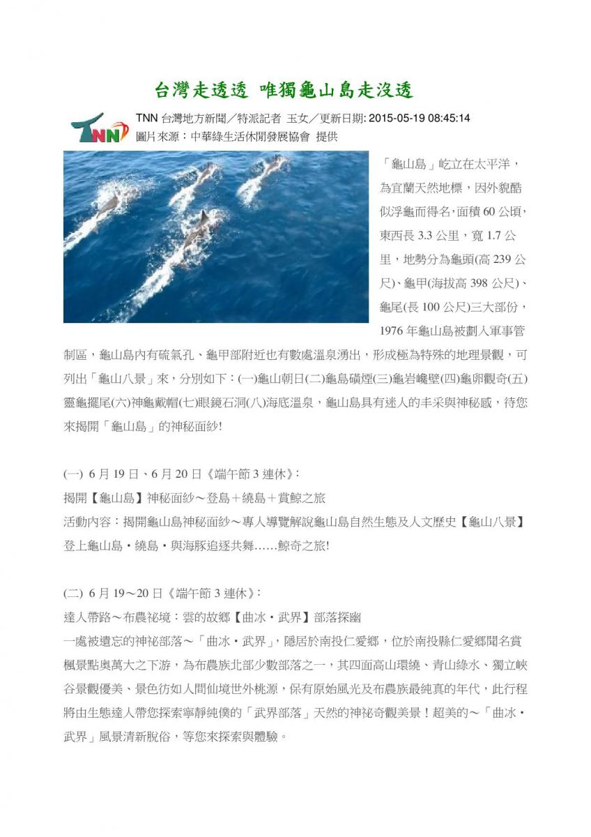 【台灣走透透 唯獨龜山島走沒透】專題新聞稿