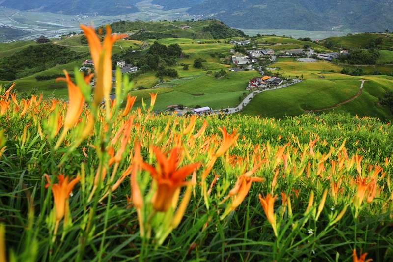 | ◎ | 金針花盛放的季節,悠遊自在地徜徉在這片優美而遼闊的景致中,綠海波濤,偶有紅瓦農舍點綴其間,呈現美麗的山區風貌;登上涼亭可俯覽花東縱谷的良田優質米耕作區,將縱谷風情盡覽其中,猶如歐洲的瑞士一般,加上中海拔的氣候舒適涼爽,故又有「台灣小瑞士」之稱。遊客一年四季均可上山感受那份屬於歐風的閒適,想要看到黃澄一片的金針花海,絕對不要錯過! |