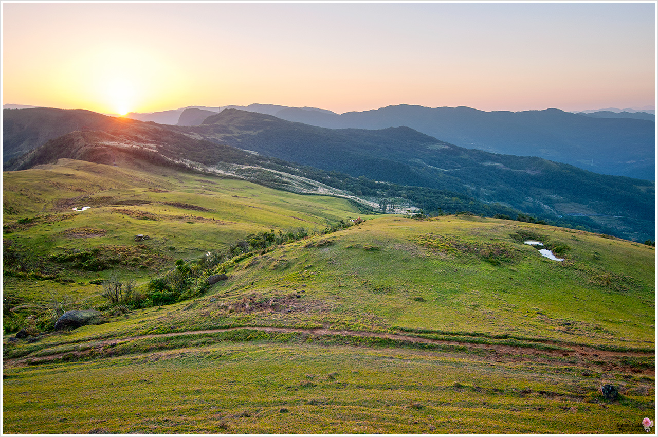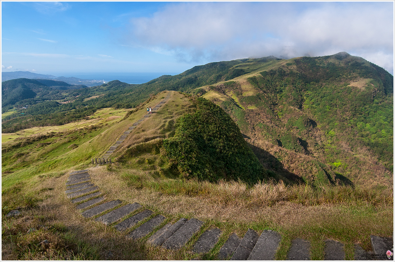 - 天氣晴朗時,草原上可西眺三貂嶺,東望太平洋;秋冬之季,強勁的季風常推來一朵一朵的雲團,漫山的五節芒在雲團中若隱若現。草坡上,大夥兒可以圍坐說笑,或躺個舒適的大字形,仰望蔚藍的天空,讓山風和著海風吹拂著。站在最高點,蘭陽平原及龜山島皆在你的腳底下,山海交錯,人煙渺遠,真正是置身世外的天堂仙境。