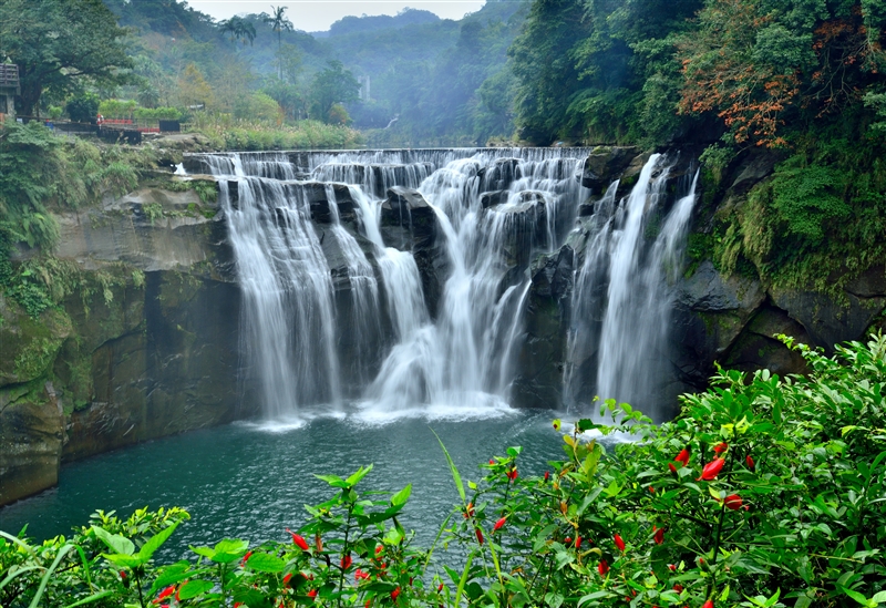 - 去過十分瀑布的人,莫不讚歎,就像誤闖仙境,如真似幻屬幕簾式瀑布,有台灣的尼加拉瓜瀑布之稱,傾瀉而下的瀑布,如千軍萬馬奔騰,傾瀉而下,墜入一大片寬廣深潭,瀰漫的水氣經陽光折射,全現出晴空霓虹璀燦奪目,故有彩虹淵的美名。