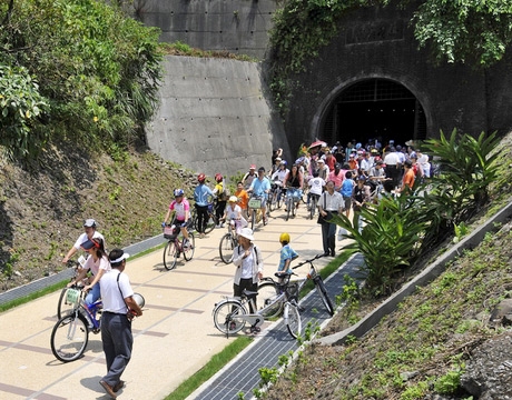 - 北台灣第一條以鐵路隧道改建而成的鐵馬隧道,由於舊草嶺就在新草嶺隧道旁,每當火車經過時,還可聽到隆隆的火車聲,讓許多鐵道迷期待不已。舊草嶺隧道以鐵道博物館概念設計,隧道內的車道地面仿造鐵路軌道形式,勾劃出鐵路意象,照明燈具使用具有復古味道的油燈燈罩。騎著單車穿越舊草嶺隧道,在隧道火車音效下,宛如騎在涼涼的鐵支路隧道內,感覺復古又有趣。