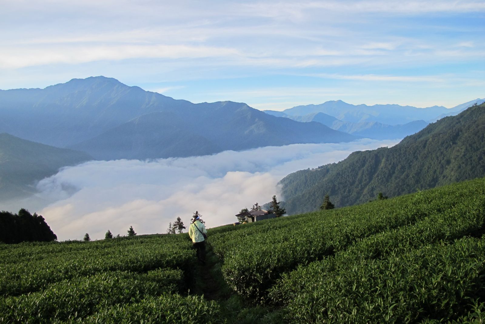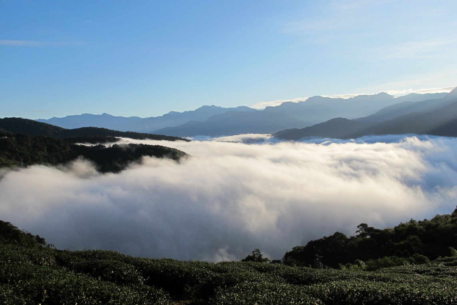 | ◎ | 很多旅人行腳至此,常找一處高地閒坐坐看雲起時,觀賞雲海、雲瀑標高一四00到一六00公尺之瑪嵐茶園位處高山氣候系統的交界處,其高度正好可以俯視低空雲層 |