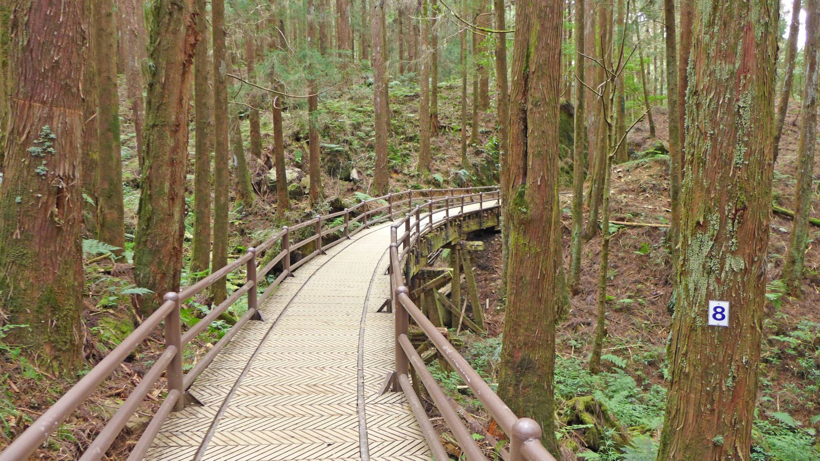 還有一絲人文歷史氣息,民國90年嘉義林區管理處將古道整建成階梯式步道搭配礫石和枕木鋪面,