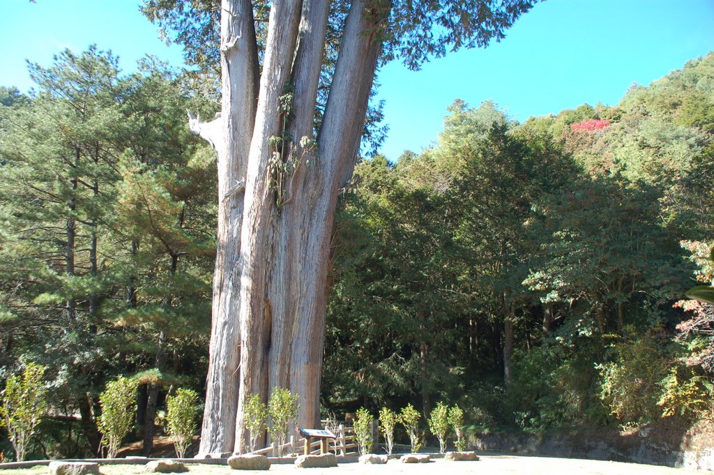雪山神木樹種為紅檜木,樹齡1400年,神木附近設有公廁及紀念碑⋯