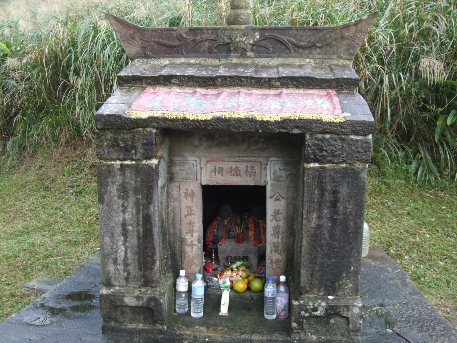 路旁可見一間石材建造的福德祠,形式古樸