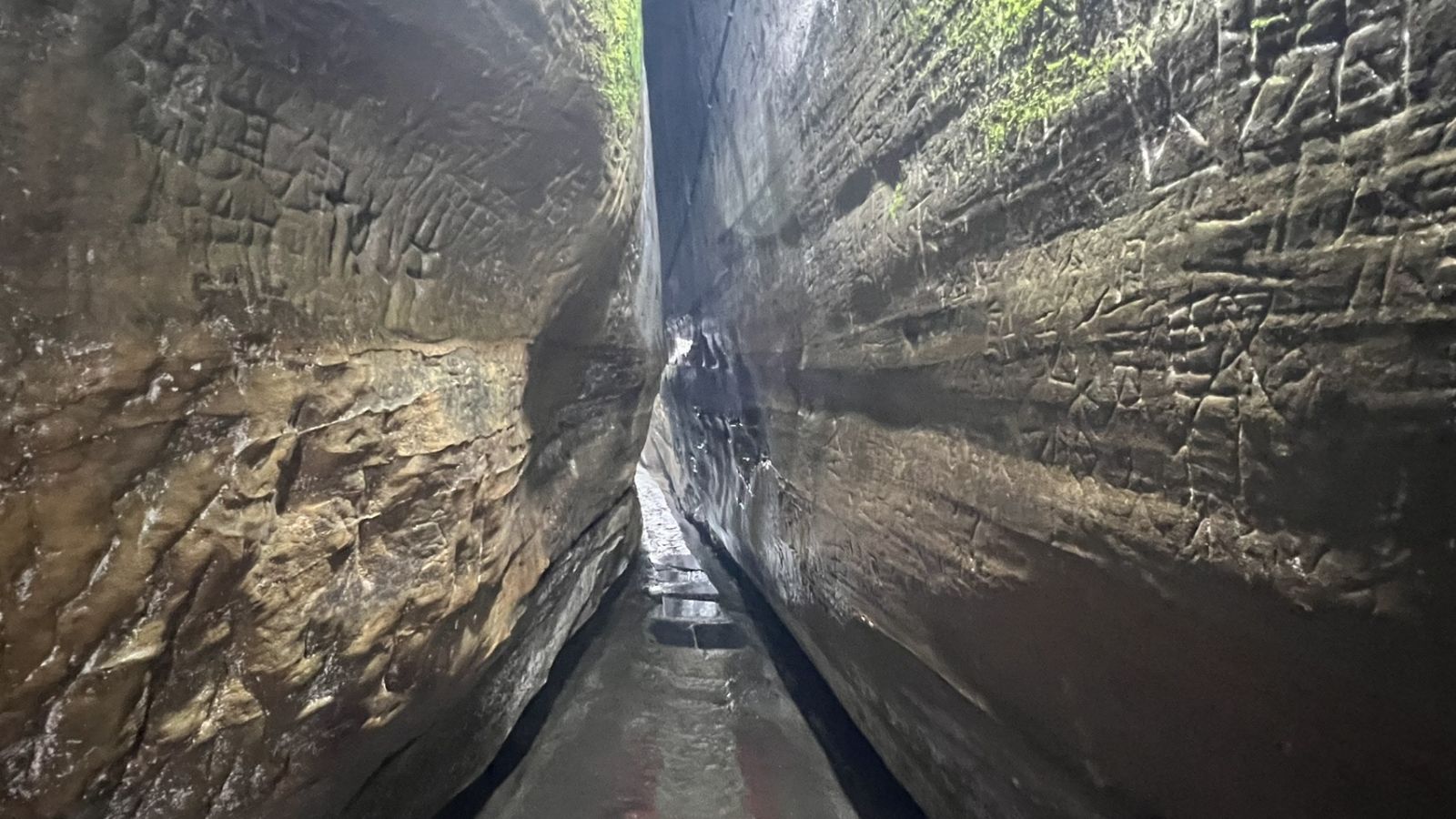 步道狹長空間幽秘,有時還需要側身才能通行,由洞口往內走,岩壁會越走越窄,簡直是考驗體型和膝蓋啊!